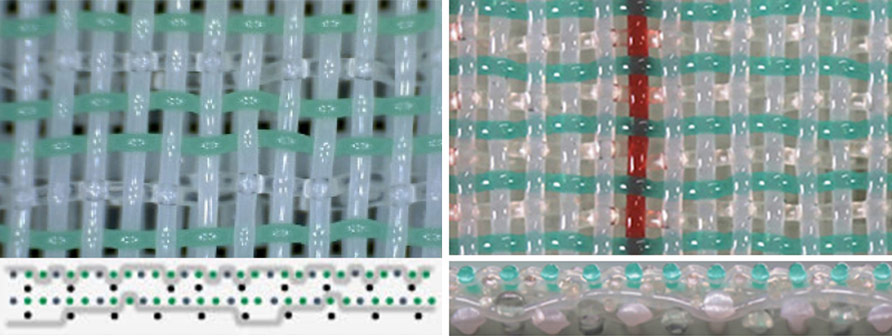 The wear side is made with a coarse mesh to improve stability and wear resistance. The paper side is made with very fine yarns on the surface to optimize the sheet forming performance.